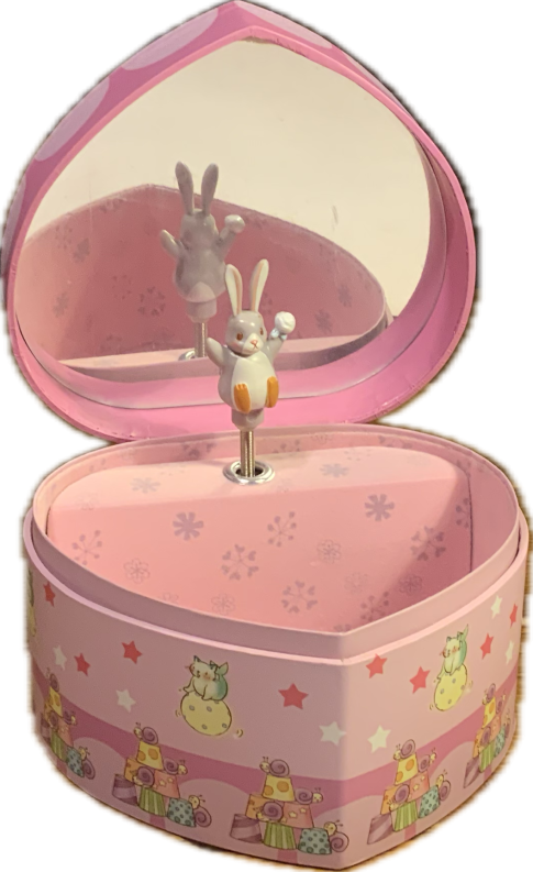 Diese liebevoll gestaltete Kinder - Spieluhr entführt kleine Träumer in die fantasievolle Welt des Lapingouin, einer charmanten Mischung aus Hase und Pinguin, bekannt aus französischen Kinderbüchern. Öffnet man den Deckel, beginnt ein kleines graues Häschen mit weißem Bauch und Pinguinfüßen, sich anmutig zur Melodie von Mozarts "Lullaby" zu drehen. Der Innenraum ist mit zartrosa, gemustertem Samt ausgekleidet und bietet ein großzügiges Fach für kleine Schätze. Ein großer Spiegel im Deckel reflektiert die tanzende Figur und verstärkt die magische Atmosphäre. Die biegsame Feder sorgt dafür, dass das Häschen beim Schließen des Deckels unversehrt bleibt