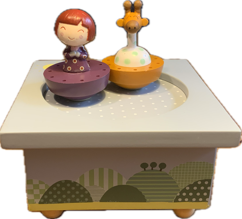 Diese bezaubernde Kinder - Spieluhr bringt die Magie direkt ins Kinderzimmer. Das Mädchen Ninon und Ihr Freund die Giraffe wirbeln fröhlich im Kreis und drehen sich dabei auch um die eigene Achse. Zur Melodie "Romance de Làmour" von L.v. Beethoven tanzen die bunten Figuren und laden zum Staunen und Lachen ein. Die leuchtenden Farben und das fröhliche Design regen die Fantasie an und machen jedes Abspielen zu einem Erlebnis. Die abnehmbaren Figuren ermöglichen zusätzliches Spielvergnügen und fördern die Feinmotorik. Dank der robusten Verarbeitung hält die Kinder - Spieluhr auch dem lebhaften Kinderalltag stand. Der mechanische Aufziehmechanismus befindet sich unauffällig auf der Unterseite und ist kinderleicht zu bedienen.